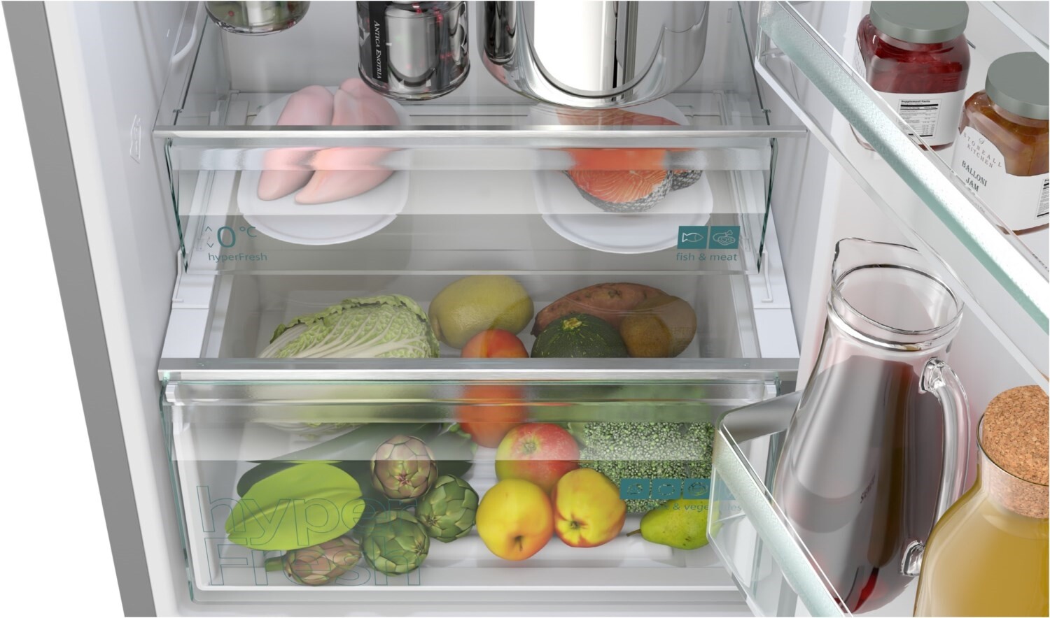 - 1 VitaFresh XXL 0°C Schublade - Fisch und Fleisch bleiben länger frisch, 1 VitaFresh XXL Schublade mit automatischer Temperatur- und Feuchtigkeitsregulierung - hält Obst und Gemüse vitaminreich und länger frisch